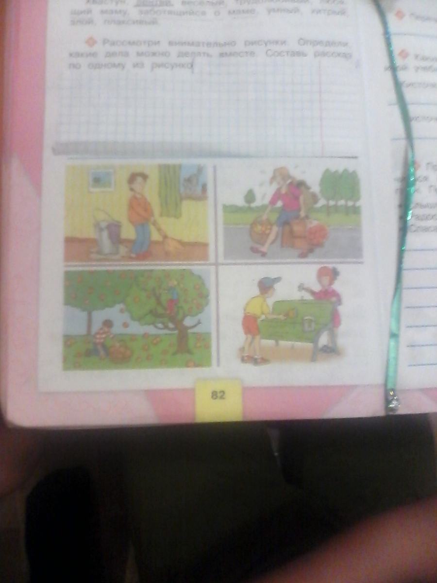 рассмотри внимательно рисунки. определи какие дела можно делать вместе. составь рассказ по одному из рисунков