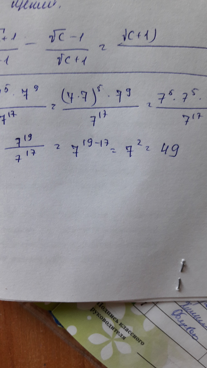49( в пятой степени)•на7(в девятой сепени) и разделить на 7 ( в семнадцатой степени) найти значение выражения.