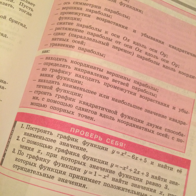 Наименьшее значение функции соответствует вершине параболы (значение по оси Оу), если а в уравнении больше нуля. Наибольшее значение в таком случае отсутствует.