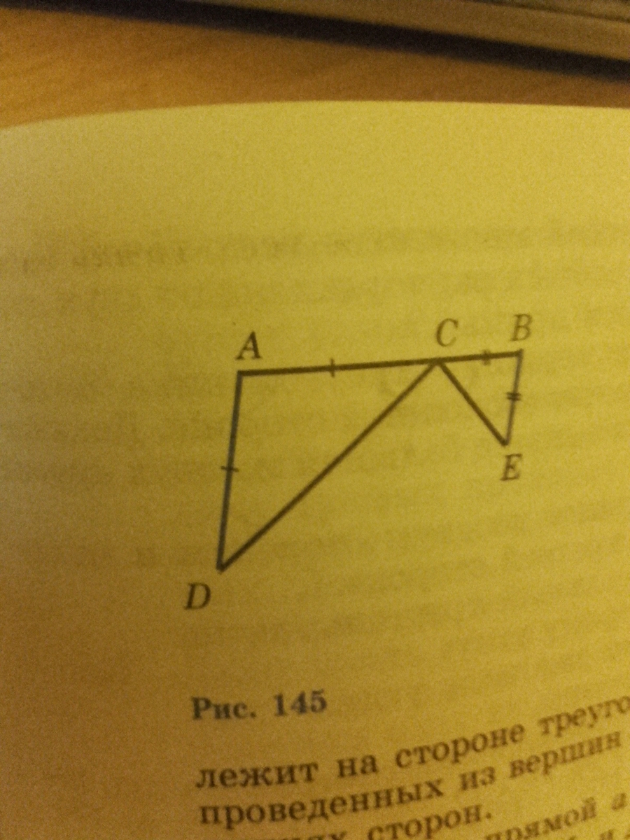 Продлеваем сторону АД и сторону СЕ - точка соединения Н, получаем треугольник ДНСПродлеваем ЕВ и ДС до соединения получаем точку М и треугольник ЕСМУгол СЕВ= углу ВСЕ , треугольник СВЕ равнобедренныйугол АДС=углу АСД, треугольник АСД равнобедренныйУгол АДС = углу СМВ как внутренние разносторонниеУгол АДС= углу ВСМ как вертикальные, треугольник СМВ равнобедренный угол МСВ=углу СМВ, отсюда СВ=ВМ=ВЕ, т.е СВ - медиана треугольника СЕМ и равна 1/2ЕМ.Такое соотношение когда медиана = 1/2 стороны которую она делит возможно только в прямоугольном треугольнике. Значит угол МСЕ=90Угол МСЕ=углу ДСН как вертикальные = 90, угол НСМ=углу ДСЕ как вертикальные и ==(360 -90-90)/2=90