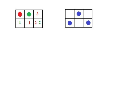 1) По 1 клетке - 6 вариантов. Поскольку их всего одна, то никакие две не являются соседними.
