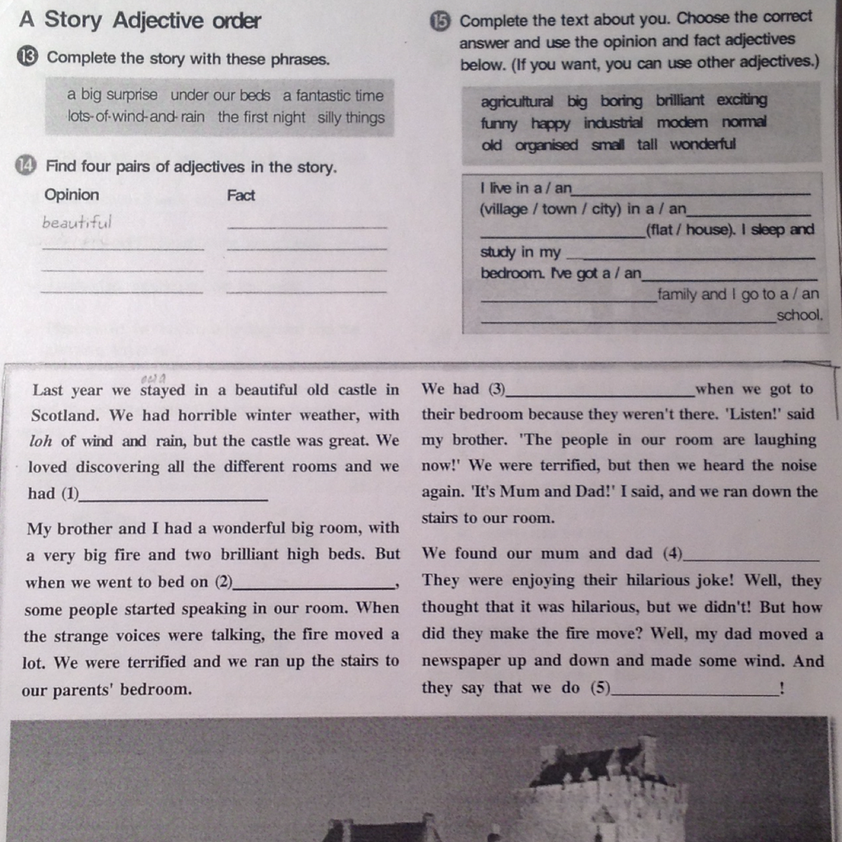 13: 1) a fantastic time 2) the first night 3) a big surprise 4) under our beds 5) silly things