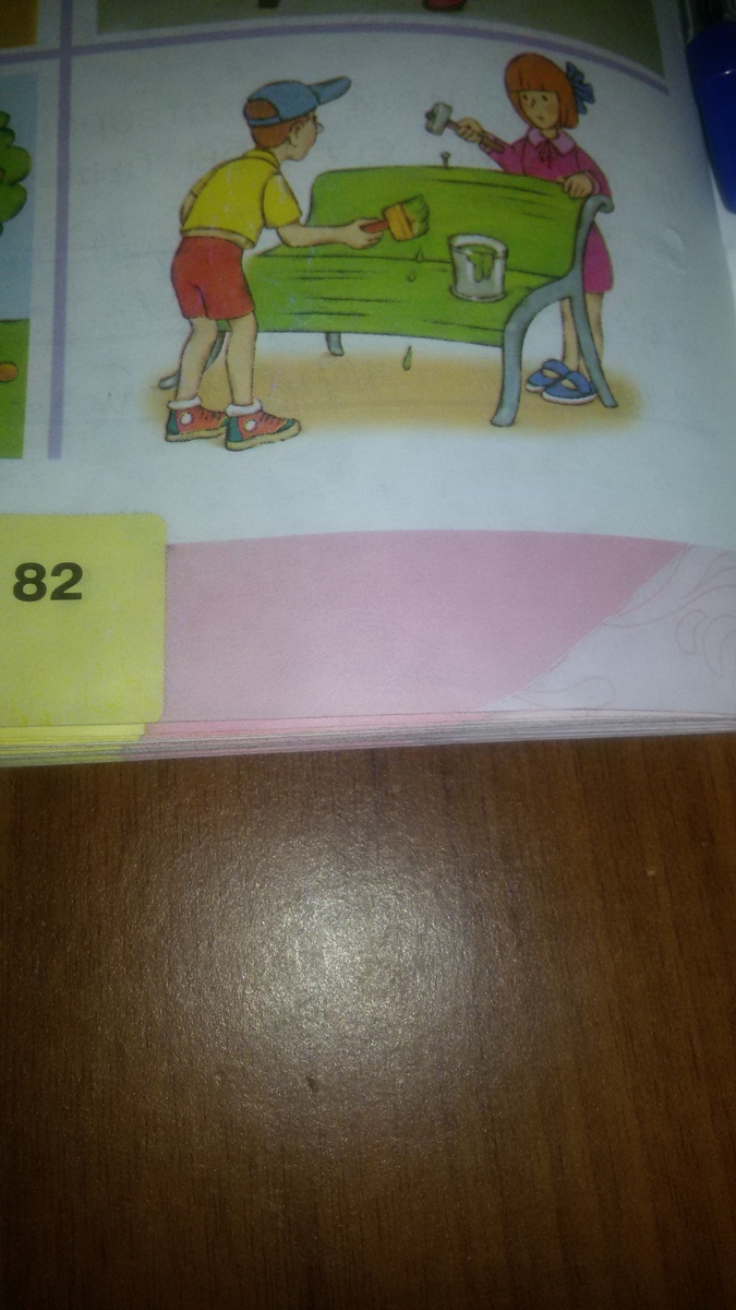 на скамейке.Они раскрасили её в зелёный цвет.Весь двор был благодарен Ире и Мише!