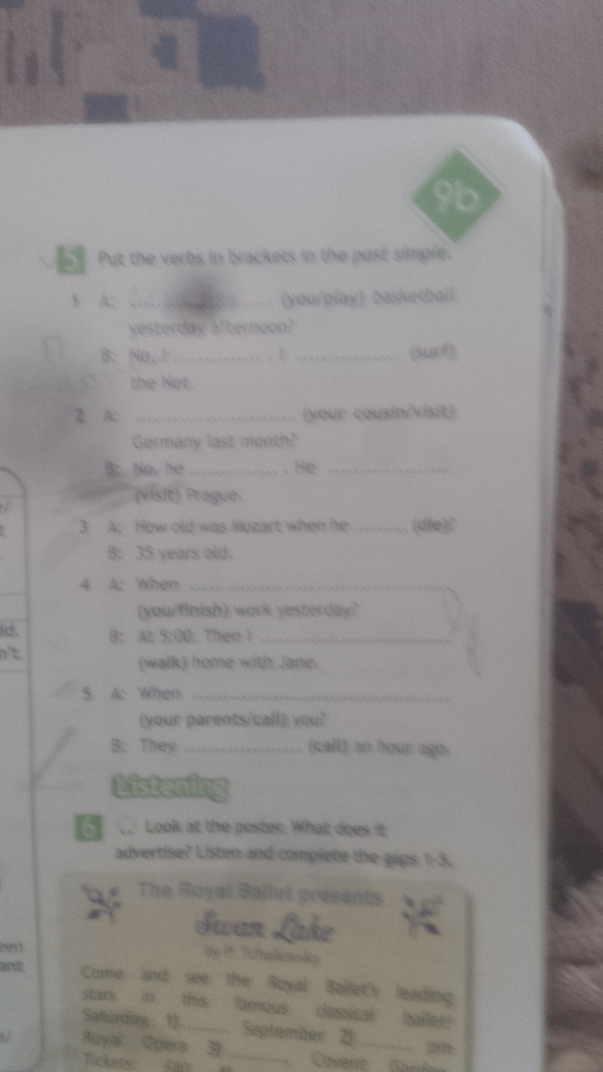 did you play. no i didn't . i surfed . did your cousin visited. no he didn't . he visited. died.did you finish . walked. did your parents called. they called