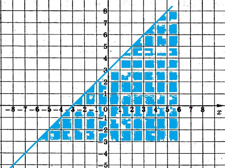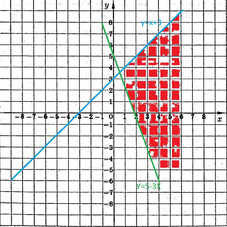 Неравенству у ≤ х+3 удовлетворяет часть плоскости, закрашенная синим цветом ( см. рис. 1)