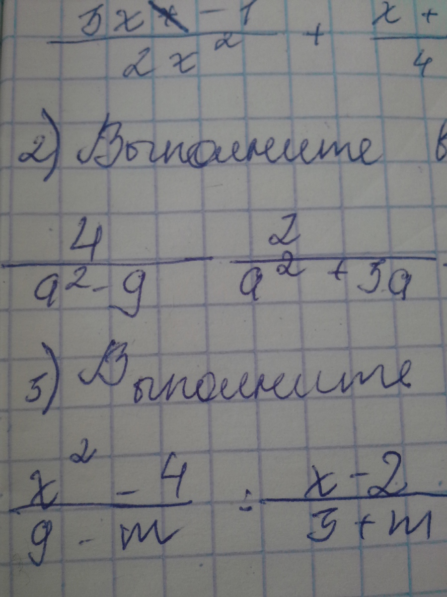 frac{4}{a^2-9} - frac{2}{a^2+3a} = frac{4(a^2+3a)}{(a^2-9)(a^2+3a)} - frac{2(a^2-9)}{(a^2-9)(a^2+3a)} =\ frac{4a^2+12a-2a^2+18}{(a^2-9)(a^2+3a)} = frac{2a^2+12a+18}{(a^2-9)(a^2+3a)} = frac{2(a+3)^2}{(a-3)(a+3)a(a+3)} = frac{2}{a(a-3)}