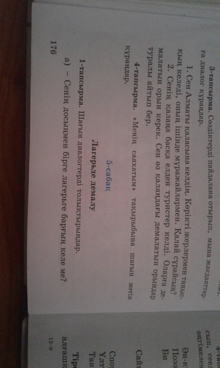 мен лагерьге жазда бардым.Онда мени жане апайымды ата-анамыз жиберди.Басында менин баргым келмеди бирак мен бардым.Лагерьде бираз болдым ар турли ойындар болды. Бирак мен уйге кайтып кеттим.Уйде кызыксыз болып кайтканым ушин окиндим!!!
