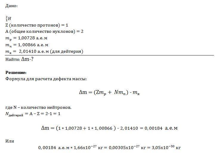 1.Определите дефект масс ядра изотопа дейтерия 2 1 H (тяжолого водорода)Масса протона приблизительно равна 1,0073 аем, нейтрона 1,0087 аем , ядра дейтерия 2,0141 аем, 1аем =1,66 •10`-27 кг