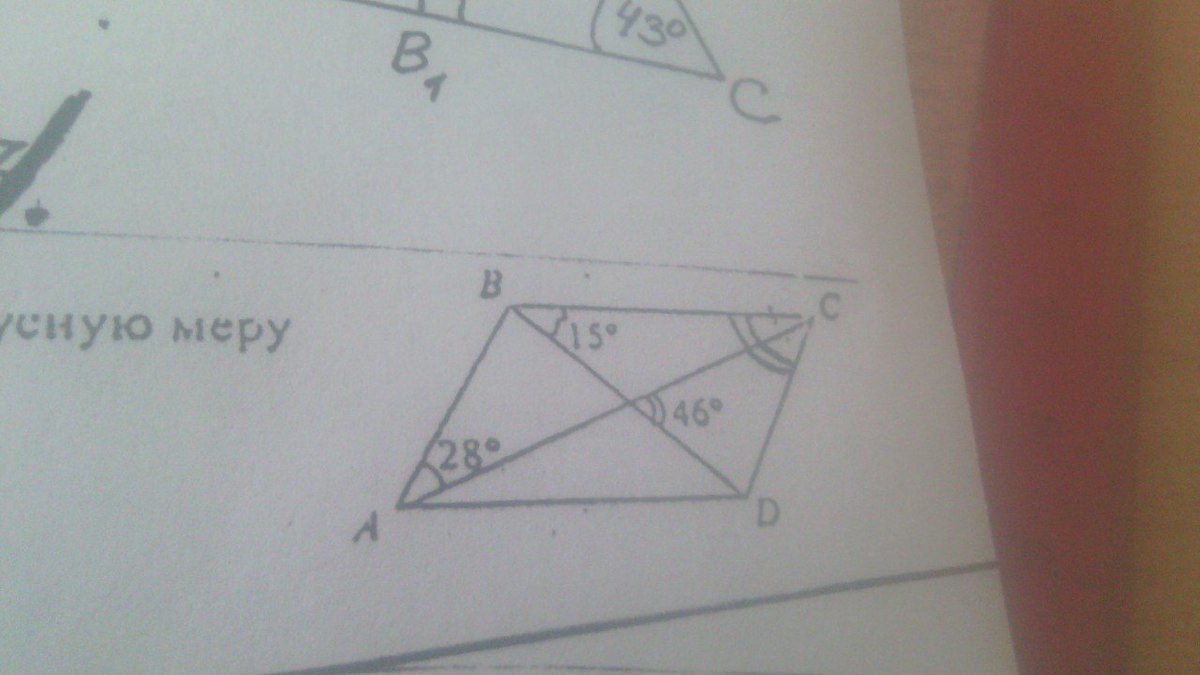 Помогите!!! ABCD - параллелограмм Нужно найти градусную меру угла BCD по данным рисунка