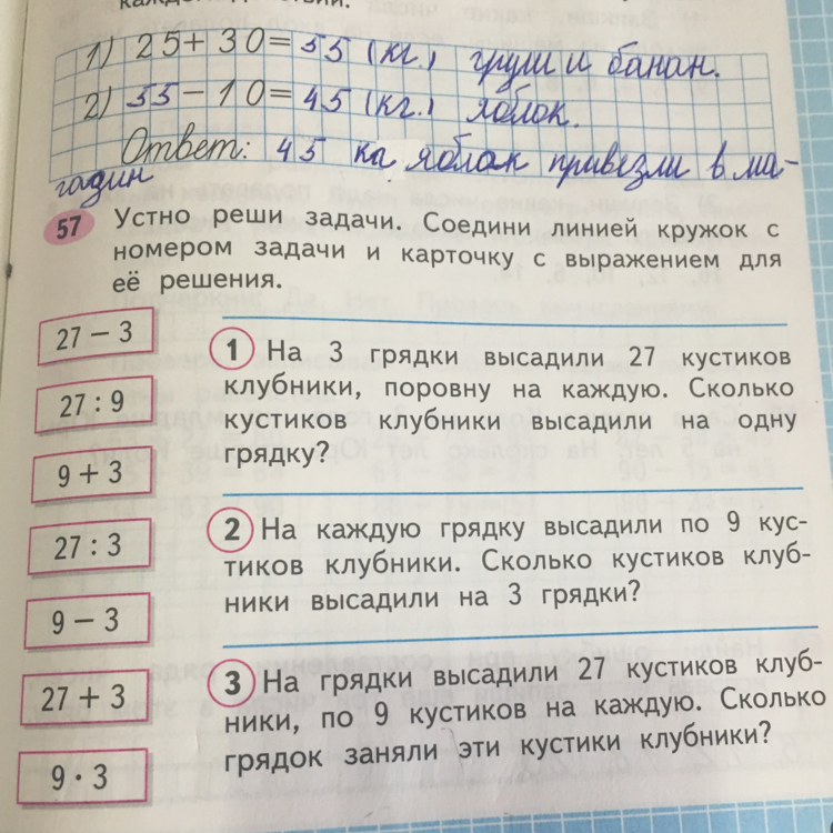 Устно реши задачи. Соедини линией кружок с номером задачи и карточку с выражением для её решения.