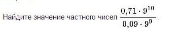 (0.71 *9^10) /(0.09 *9^9) = (0.71 *9) /0.09 =0.71 *100 = 71