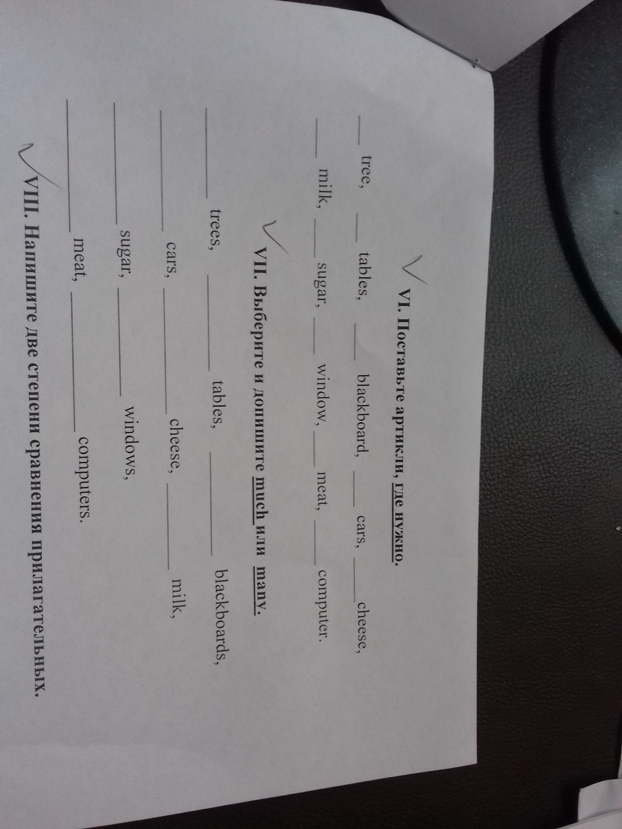 артикль "а" перед словами : tree, blackboard, window, computer. остальные слова - без всякого артикля.