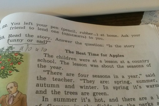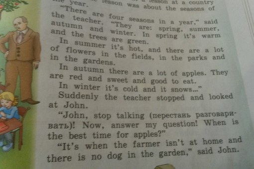 у детей был школьный урок . урок был о временах года .есть 4 времени года сказал учитель. это весна лето осень и зима. весной тепло и деревья зеленые .