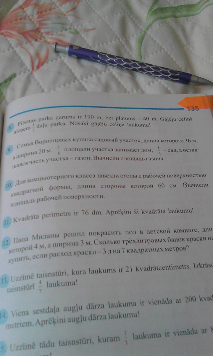 Семья Воронцовых купила садовый участок, длинна которого 36метров, а ширина 20 метров. 1/6(дробь) площади участка занемает дом, 1/4( дробь) сад, а оставшиеся часть участка-газон . Вычесли площадь газона.