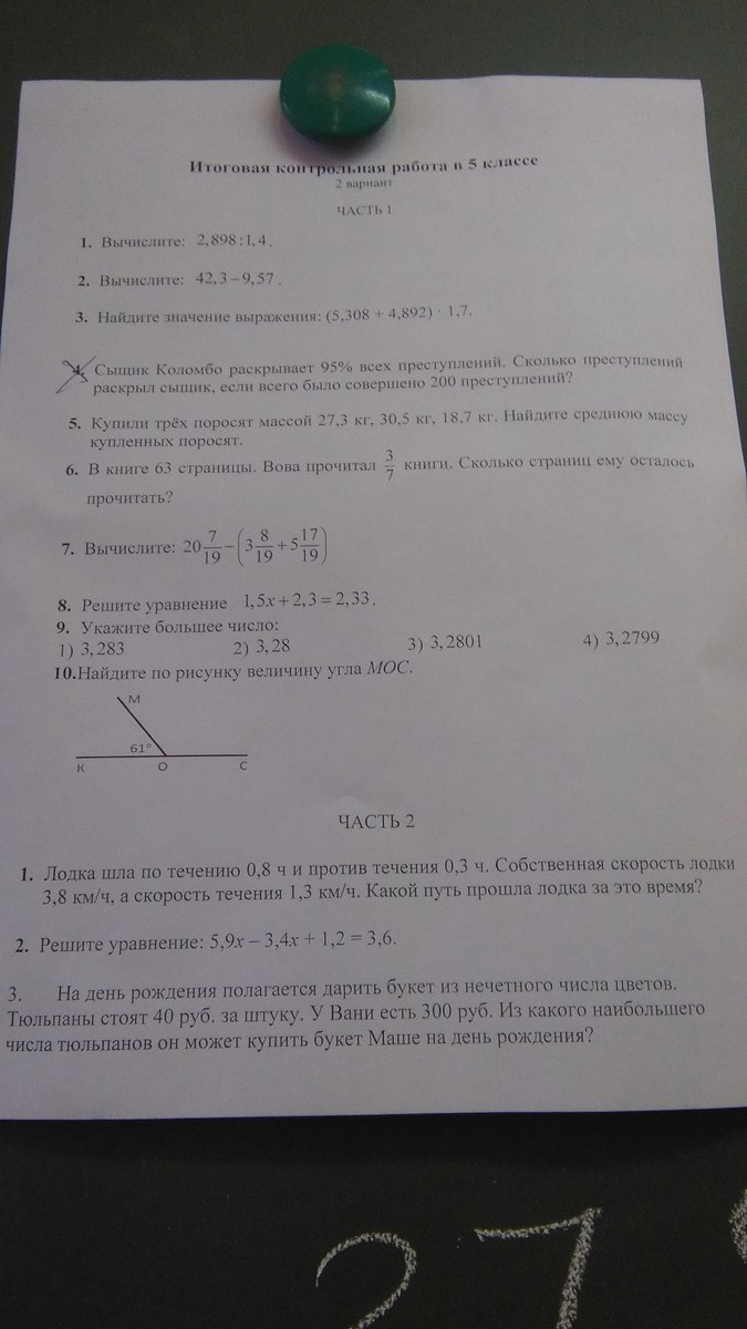 Такая легко, просто 180-61=119, если спросят где 180 взял скажи сумма углов равна 180 градусам) 100%