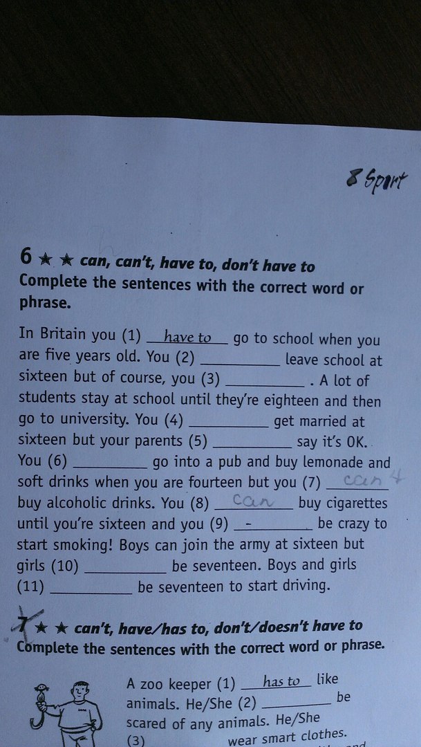 2)can;3)don't have to;4)don't have to;5)can;6)can;9)can't;10)can;11)can