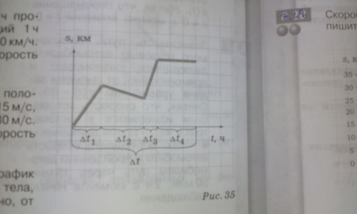 На рисунке 35 приведён график зависимости перемещения тела, двигавшегося прямолинейно, от времени. Опишите, как двигалось тело в интервалы времени Δt1, Δt2, Δt3, Δt4, Δt.