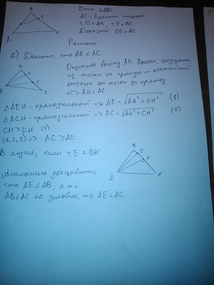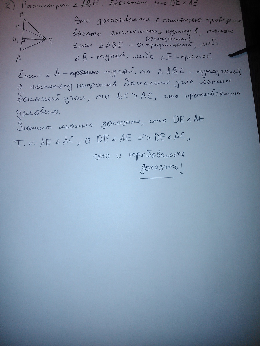Прошу прощения, на первой картинке на чертеже не отмечена точка D, а на второй картинка описка -- "против большего угла лежит большая сторона"