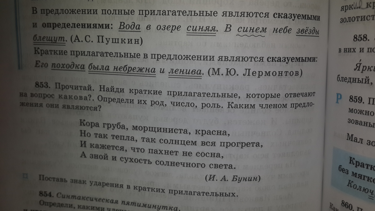 853. Прочитай. Найди краткие прилагательные, которые отвечает на вопрос какова?. Определи их род, число, роль. Каким членом предложения они являются? Помогите пожалуйста мне с русским языком, заранее спасибо за ответ буду очень благодарна!