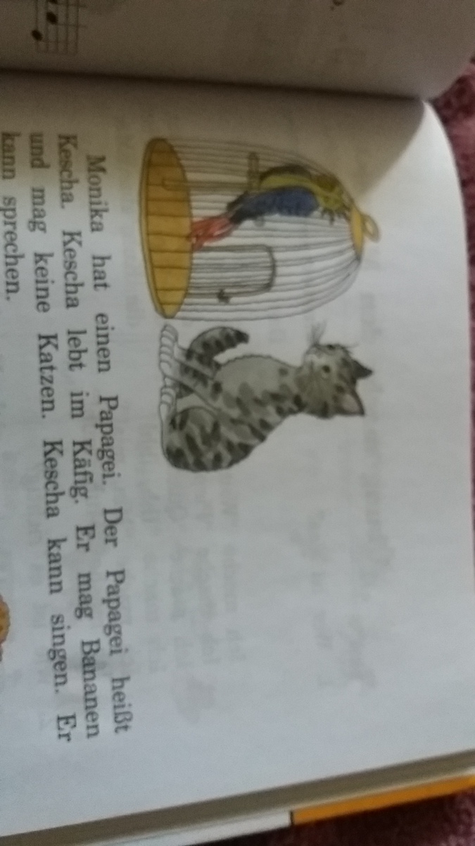 Ich habe ein Haustier. Es ist eine Katze. Sie heisst Manjunja. Sie ist zwei Jahre alt. Neulich hat sie 5 Kätzchen geboren. Sie ist sehr weich. Sie ist dreifarbig. Sie trinkt Milch und isst Fisch gern. Wir spielen oft zusammen. Wir lieben unsere Manjunja sehr.