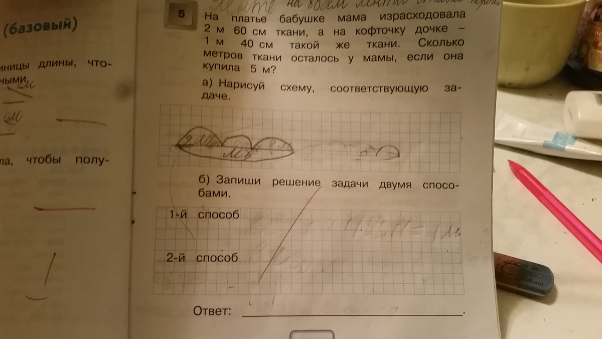 1)2м60см+1м40см=4м-всего израсходовала ткани мама