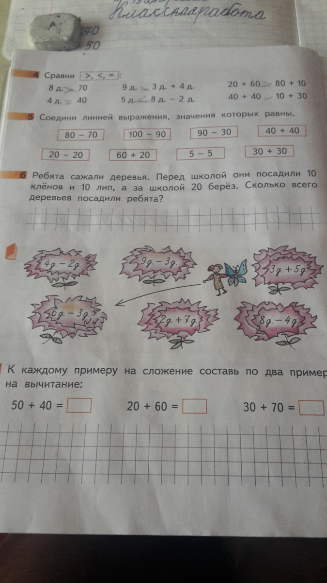 6 упражнение. ребята сажали деревья перед школой они посадили 10 клонов и 10 лица Школы 20 берешь Сколько всего деревьев посадили ребята