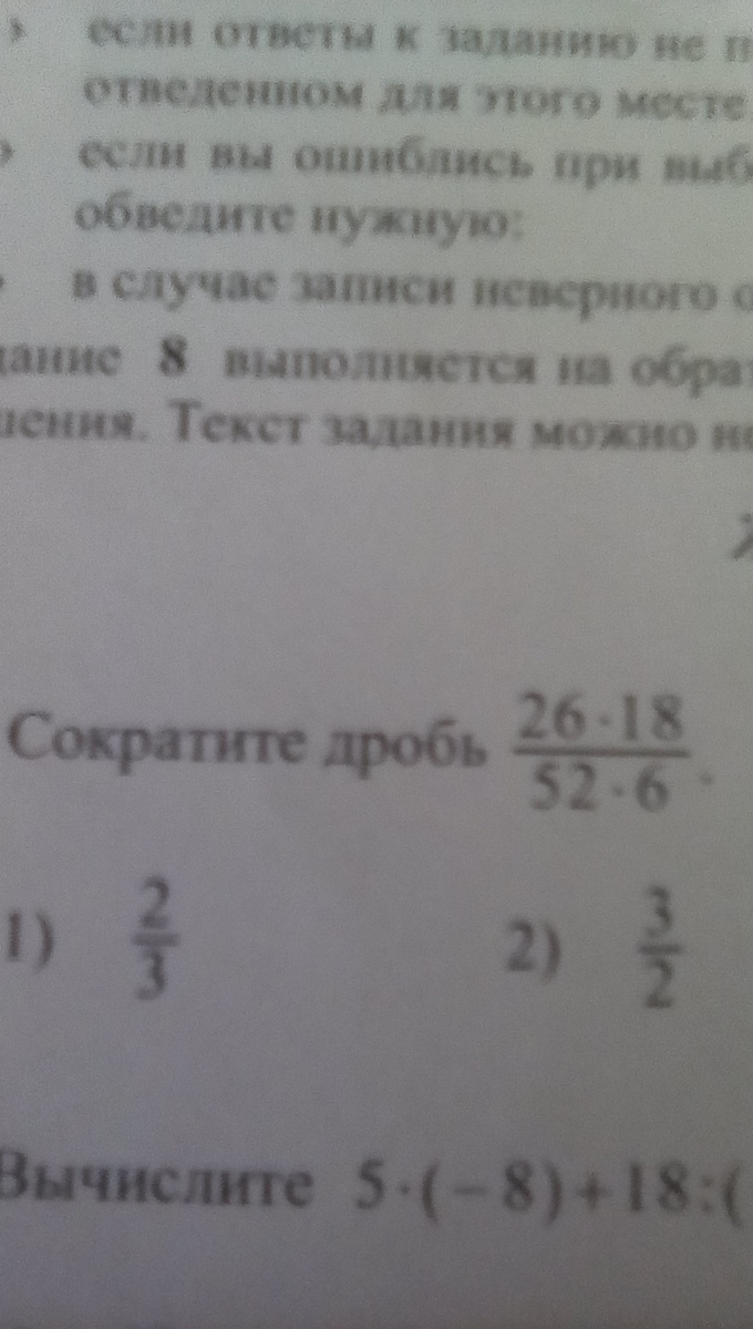 26 сокращается с 52 будет 2 в знаменателе т 18 с 6 будет 3 в числителе то есть 3/2=1 5