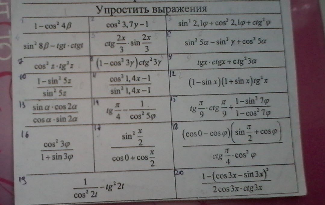 13) tga * ctg2a = 1/ctga * (ctgx-tgx)/2 =(ctga-tga)/2ctga