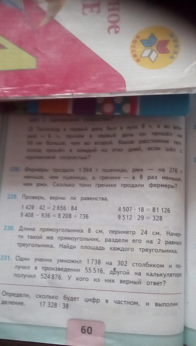 Первым действием мы находим сколько тон продали ржи 1)1364-276=1088(т)-продали ржи