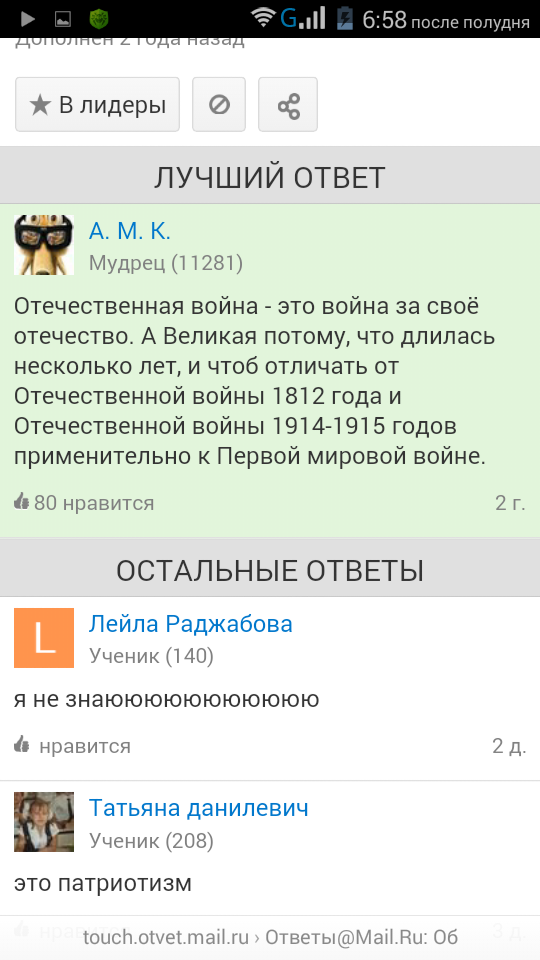 отечественная война это война за своё отечество а великая потому что шла несколько лет
