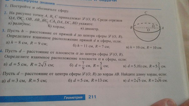б) т.к. d больше R, то плоскость и сфера не имеют общих точек
