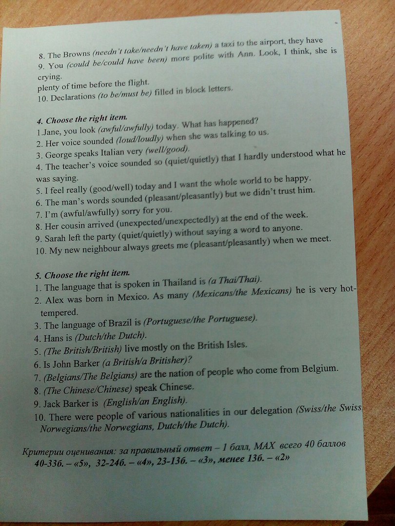 1.Thai 2.Mexicans 3.Portuguese. 4.the Dutch. 5. the British 6.a British 7. the Belgians 8.the Chinese 9. an English 10. the Swiss, the Norwegians, the Dutch.