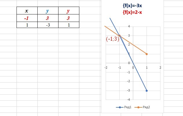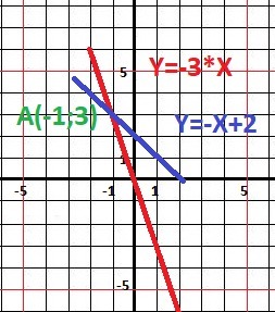 Точка пересечения - (-1;3), значит х=-1; у=3.