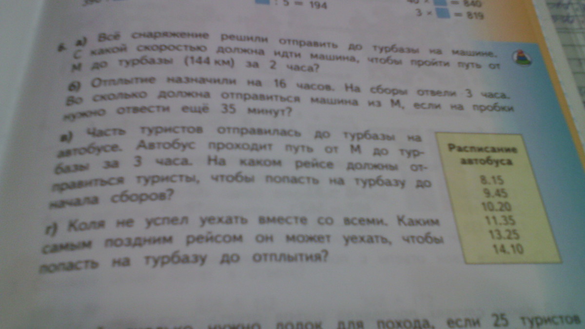 2) 13 час - 3 часа пути автобуса = 10 часов . Должны выехать рейсом в 9.45