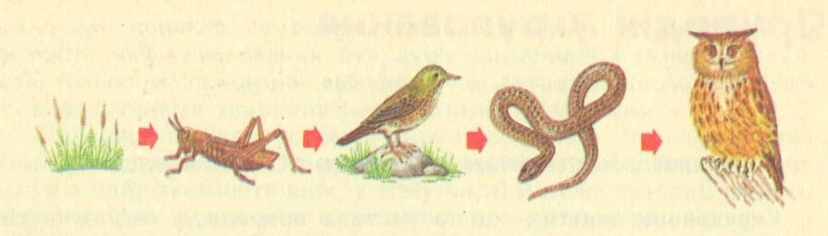 кузнечик съел траву, кузнечика съела птичка, птичку съела змея, змею сжевала сова.