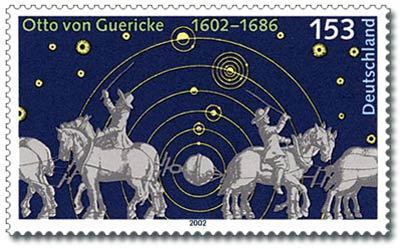 Сам его классический опыт со стеклянной трубкой и ртутью не был очень зрелищным и интересным. Отто фон Герике, немец, придумал и провел при стечении народа знаменитый опыт с "магдебургскими полушариями" . Взял две полусферы с приваренными кольцами и притертыми гладкими краями, приложил их друг к другу и откачал между ними воздух.Внешнее атмосферное давление прижало их друг к другу так сильно, что две четверки лошадей тянули их в разные стороны, но не смогли оторвать друг от друга. Этот опыт надолго потряс воображение людей. Были выпущены несколько марок. Одна из них, германская 2002 года на рисунке.