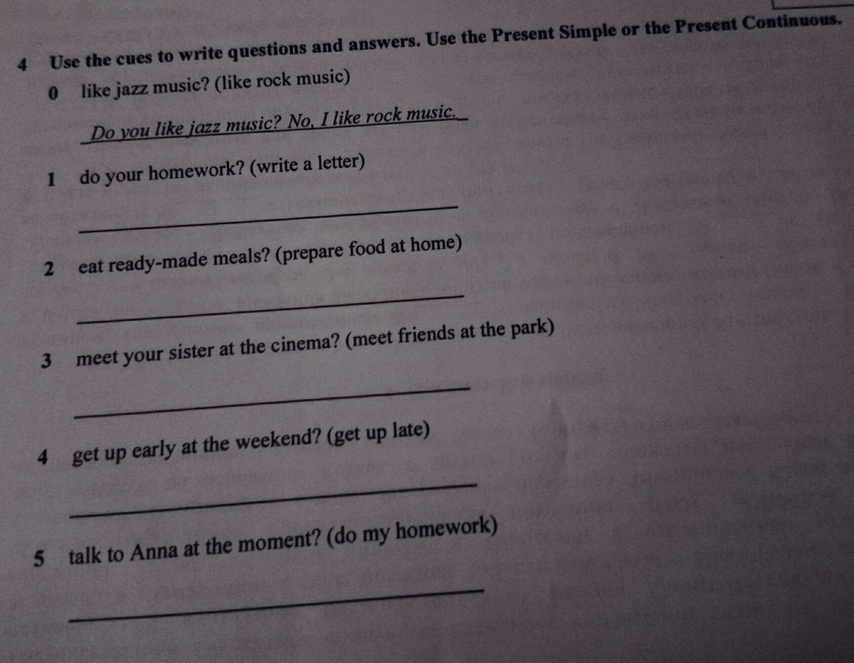 3)Are you meeting your sister at the cinema? No,I am meeting friends at the park