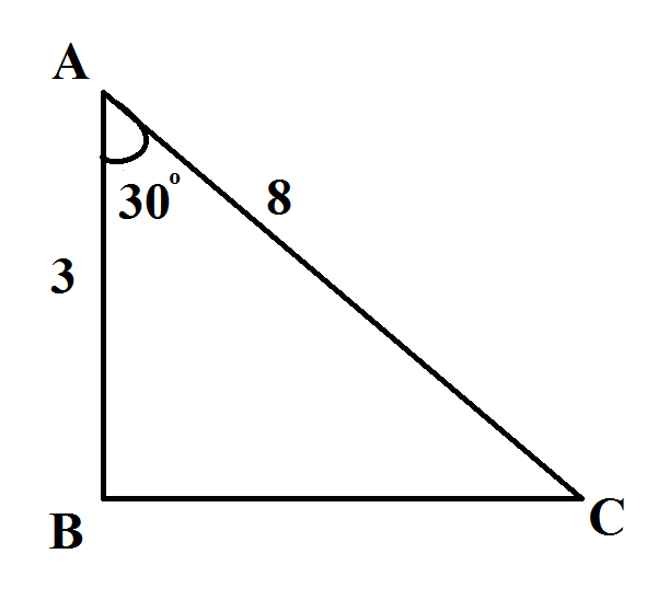 Если треугольник прямоугольный, то пусть АВ= 3(катет) , ВС=8(гипотенуза) , угол АВС=30*, по телреме катет(в данном случае это ВС) лежащий напротив узла 30градусов равен половине гипотенузы, а так как она равна 8, то ВС=4. Я только не помню как площадб находить, вроде бы перемножать все стороны S=АВхВСхАС. S=3х4х8. S=96