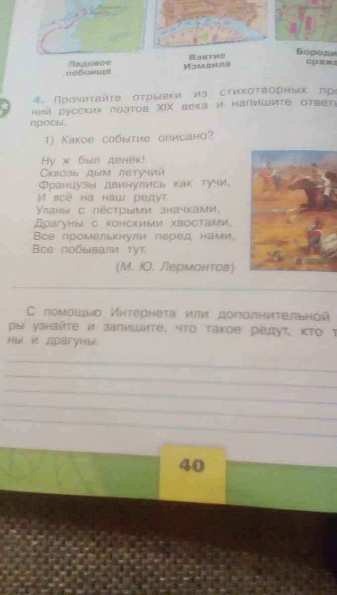 Бородинское сражение,даже так и называется стихотворение БОРОДИНО.