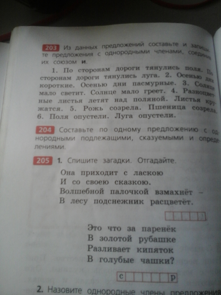 Определения:Эта осень была дождливой и холодной. Сказуемые:Саша любил рисовать и читать. Подлежащие:В лесу росли малина и земляника.