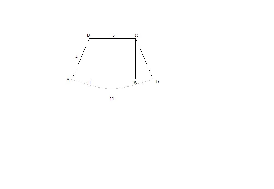 АН = DK = (AD - HK)/2 = (11 - 5)/2 = 3 м