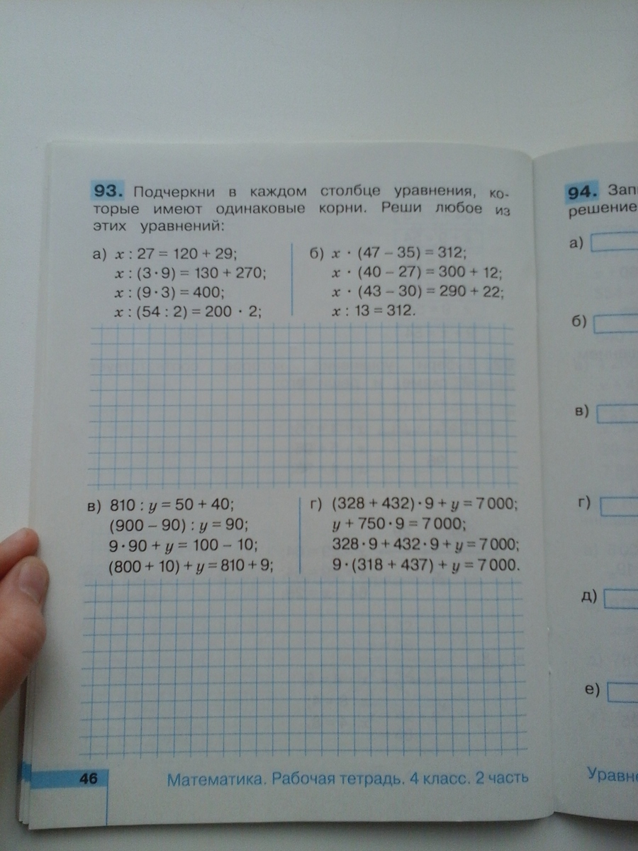 в) в задании "в" одинаковые корни будут в первом, во втором и четвертом уравнении