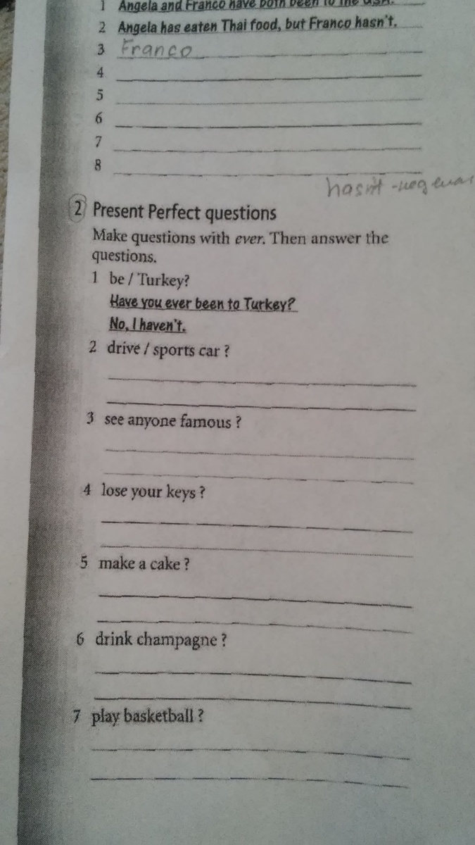 No, I haven't. Have you ever seen anyone famous? No, I haven't. Have you ever lost your keys? No, I haven't. Have you ever made a cake? Yes, I have. Have you ever drunk champagne? No, I haven't. Have you ever played basketball? Yes, I have.
