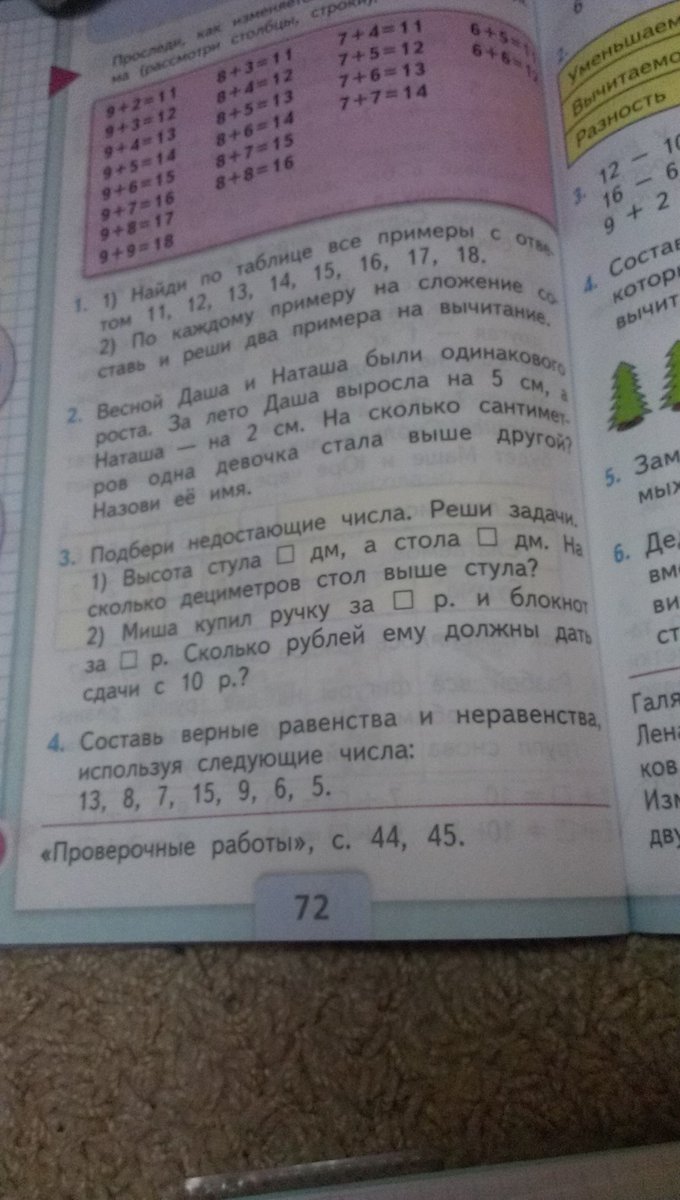 1) Стул - 4 дм , стол - 6 дм 6-4=2.