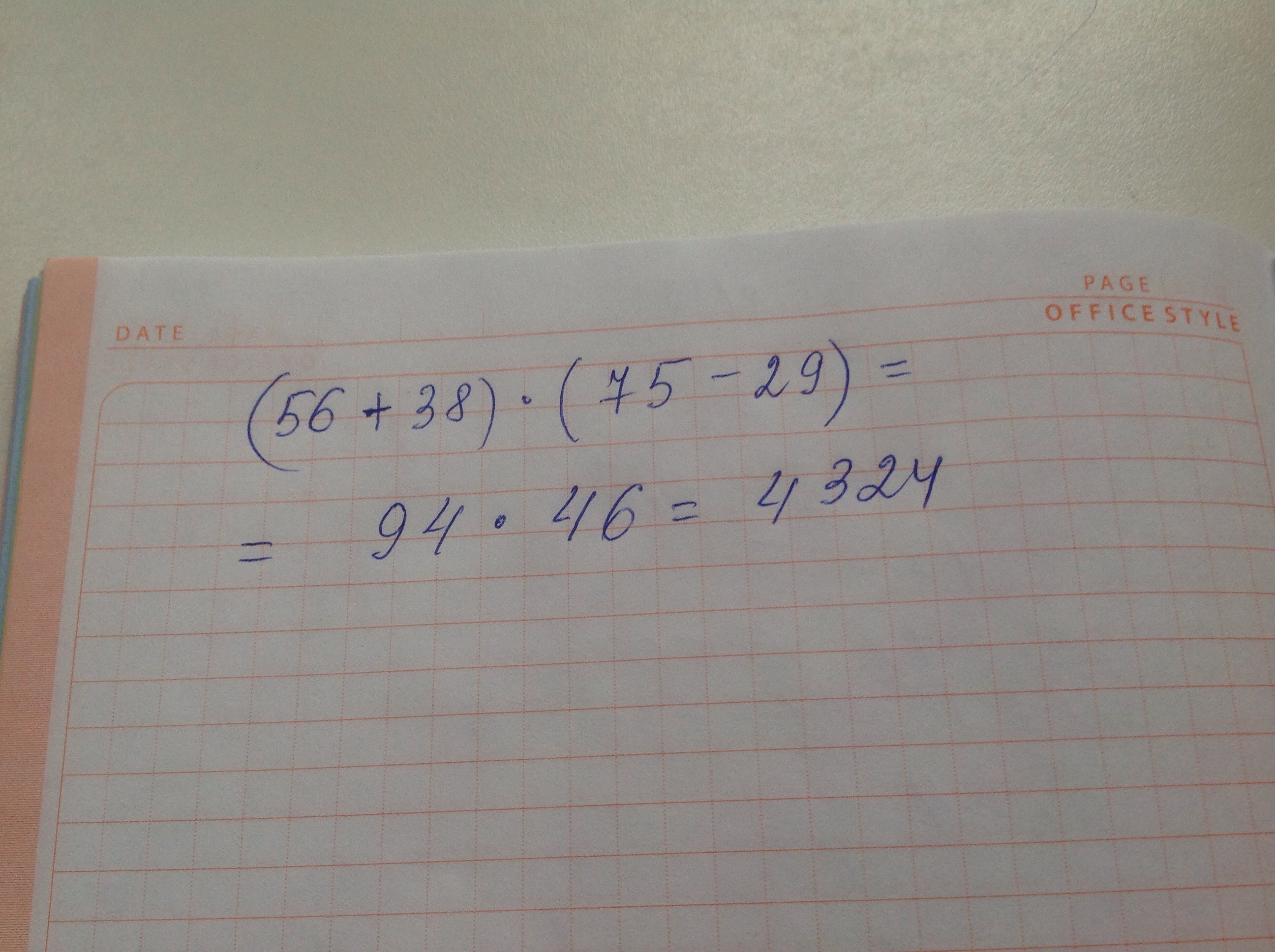Запиши числовое выражение и найди его значение: произведение суммы чисел 56 и 38 и разности чисел 75 и 29.