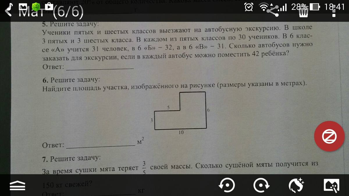 верхняя неизвестная сторона равна 5, а левая неизвестная сторона равна 3. Площадь равна 45