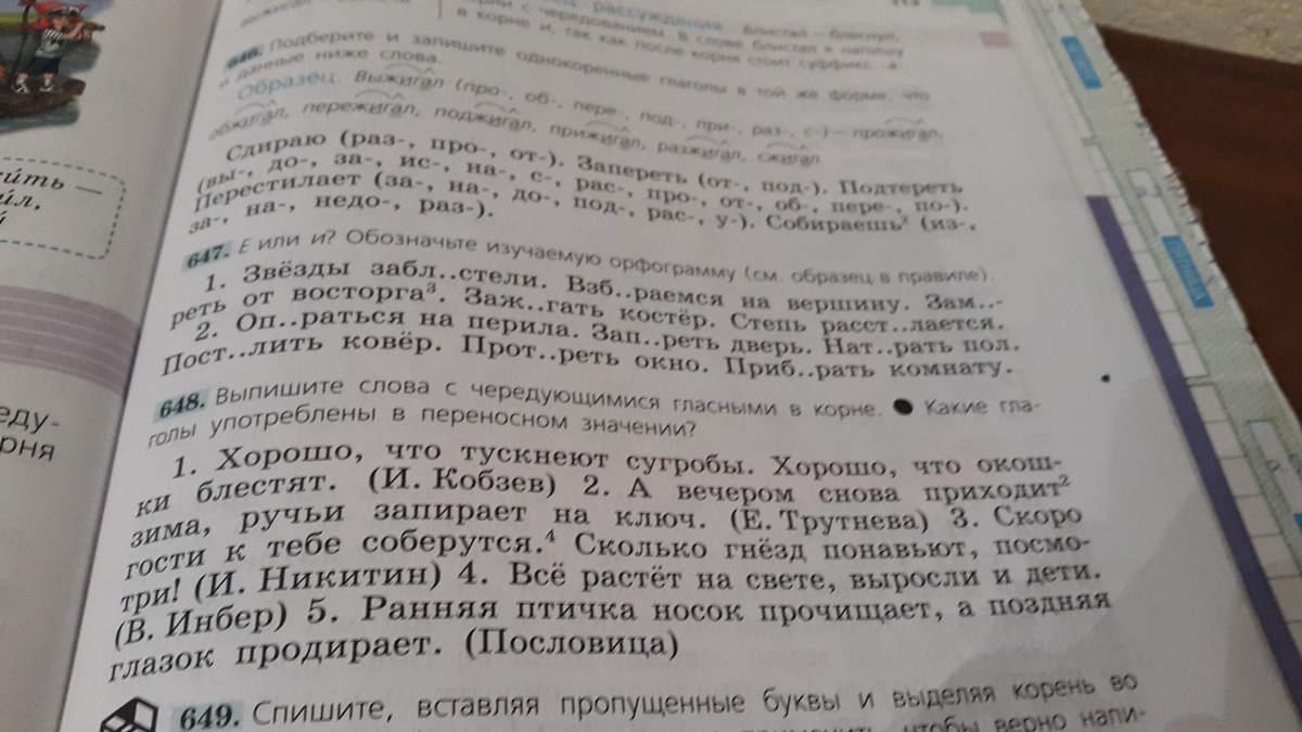 Звезды заблЕстели, взбИраемся на вершину, замЕреть от восторга, зажИгать костер, степь расстИлается, опИраться на перила, запЕреть дверь, натИрать пол,постЕлить ковер, протЕреть окно, прибИрать комнату
