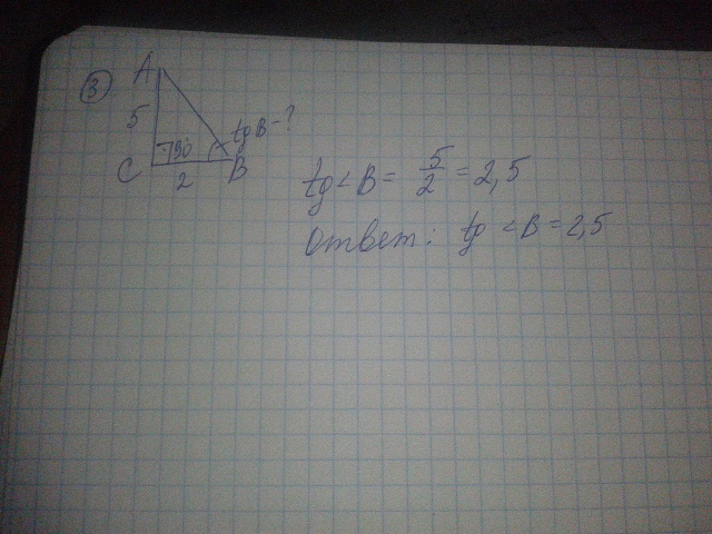 3)в треугольнике авс угол с прямой АС=5,ВС=2 найдите тангенс угла В