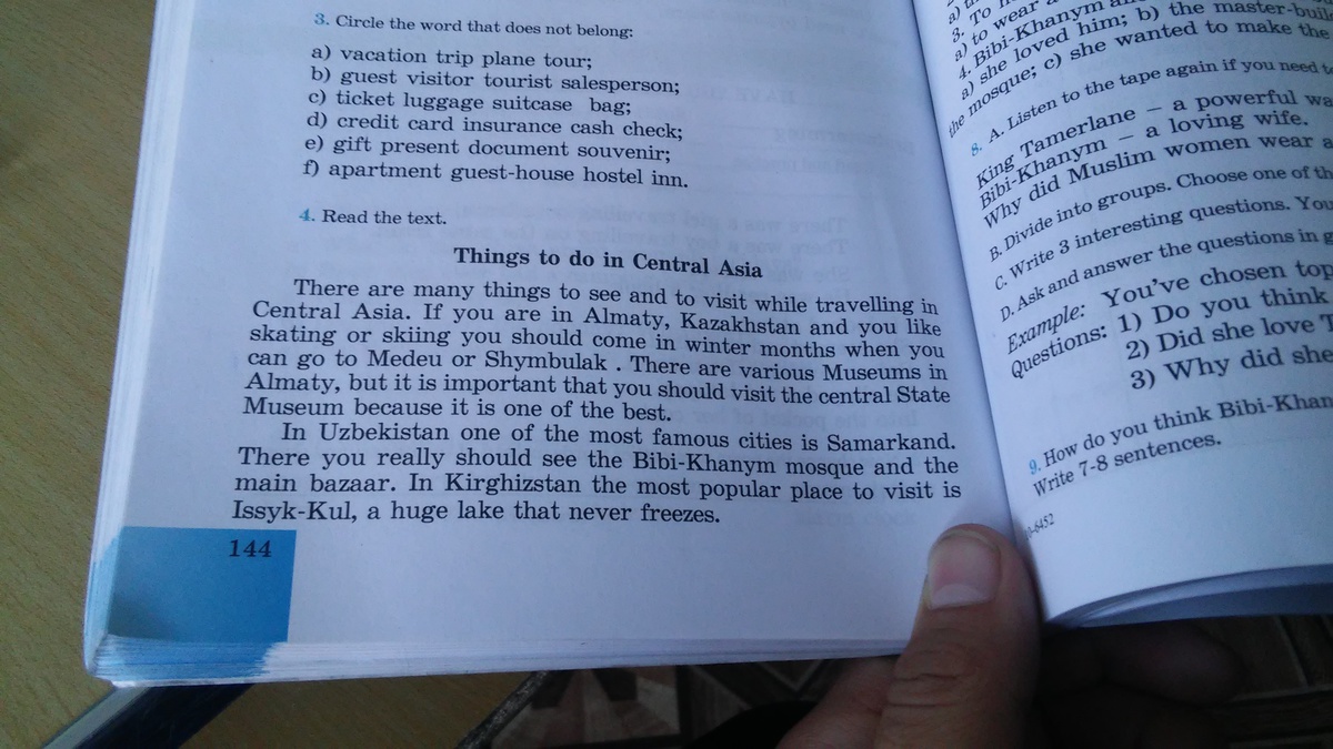 Есть много вещей, чтобы увидеть и посетить во время путешествия в Центральной Азии. если вы находитесь в Алматы, Казахстан, и вы хотите кататься на коньках или лыжах, вы должны прийти в зимние месяцы, когда вы можете пойти в Медеу или Шымбулак. Существуют различные музеи в Алматы, но важно, что вы должны посетить центральный государственный музей, потому что он является одним из best.In Узбекистан одним из самых известных городов Самарканда. Там вы действительно должны увидеть мечеть Биби-Ханым и главный базар. В Киргизстане самое популярное место для посещения Иссык-Куль огромное озеро, которое никогда не замерзает.