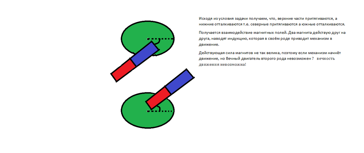 2х круга расположенных друг на против друга закрепили магниты под 30° к центру круга, северная часть магнитов расположенна в верх.